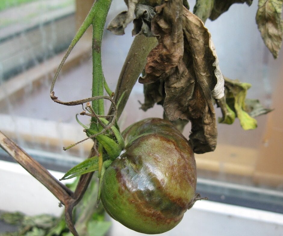 Greenhouse-grown tomato crops are less likely to be affected, simply because the wind-blown blight spores are less likely to reach the plants, but if spores do blow in through the door or vents then the disease can be just as damaging.
