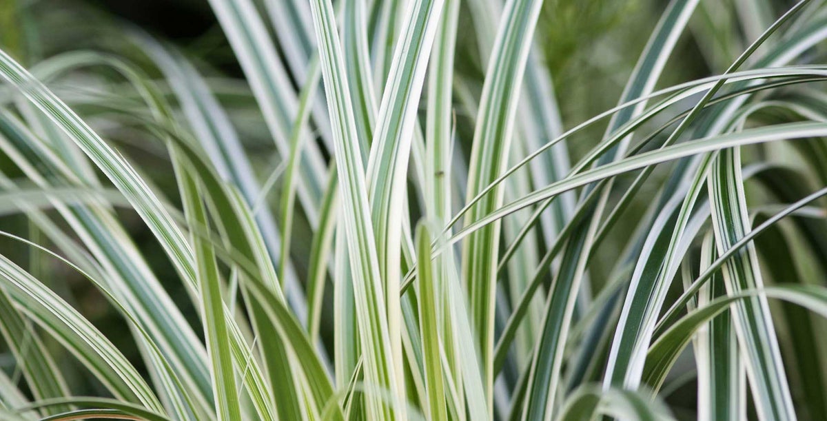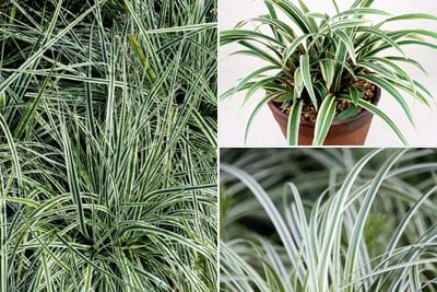 Arching leaves, produced in clumps, can be pale to dark green, bluish-grey, bright yellowish-green or bronze-purple. They can also be edged and striped with white or cream. The often brown, inconspicuous flowers appear in summer-autumn.