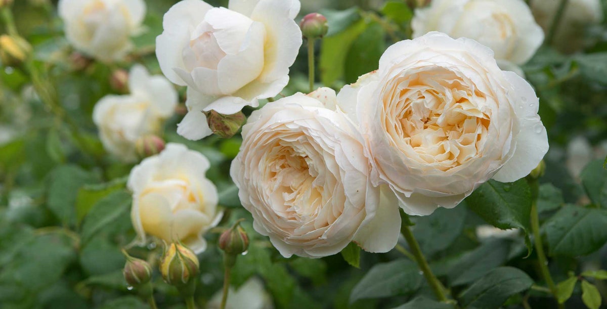 Shrub roses have an open and spreading shape, often with arching prickly branches that flower along their length. Flowers are single, semi-double or fully double in a huge number of colours – many shades of white, cream, yellow, pink, red, crimson, purple, peach and orange.