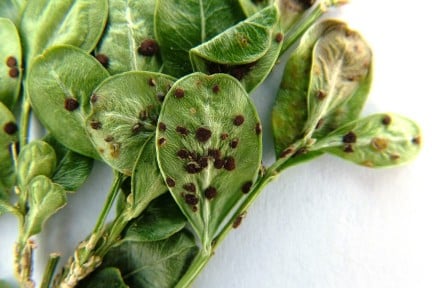 Watch for leaf spots, stem dieback and bare patches which are tell-tale signs of box blight.