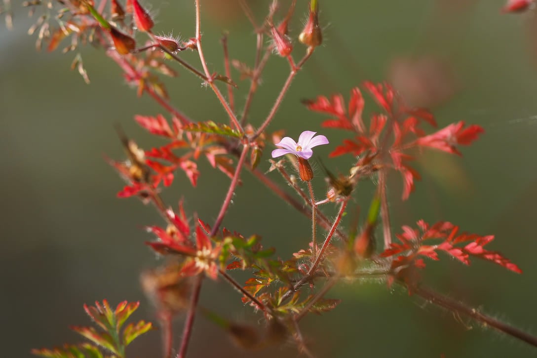 In the past, herb robert was used to treat stomach ailments, sores, bruises and wounds, and used as a mosquito repellent.